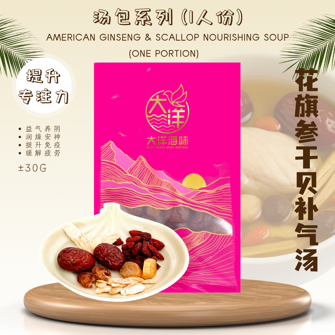 ![6933da3d12b58_1765005885.jpg [±30g] Great Ocean American Ginseng & Scallop Nourishing Soup (One Portion) | 花旗参干贝补气汤 (一人份) - PINK - Image 1](https://greatocean.my/wp-content/uploads/2025/12/6933da3d12b58_1765005885.png)
