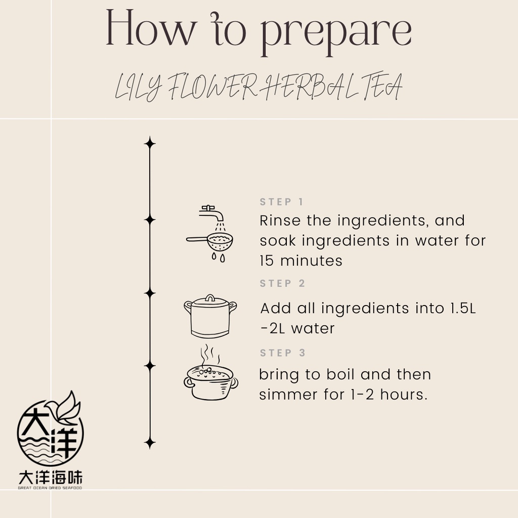 ![6933fd22a7530_1765014818.jpg [±100g] Great Mountain Herbs Lily Flower Herbal Tea Pack | 百合养颜茶 - Image 1](https://greatocean.my/wp-content/uploads/2025/12/6933fd22a7530_1765014818.jpg)