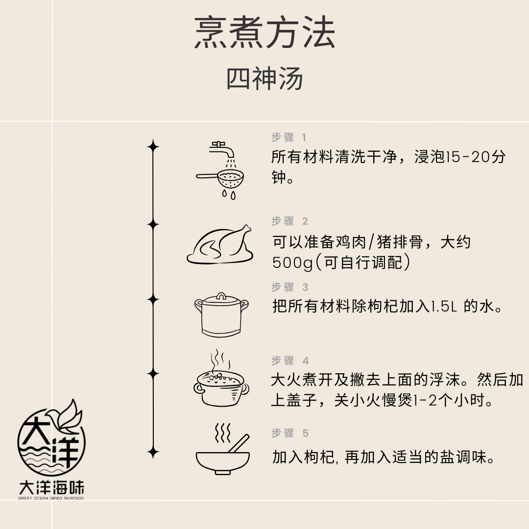 [±128g] Great Mountain Herbs Si Shen Soup Pack | 四神汤汤包