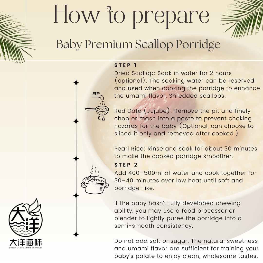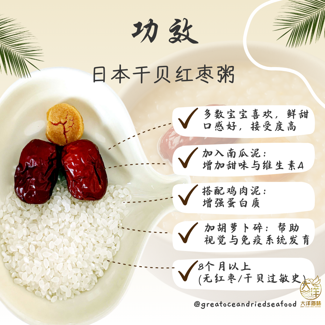 5.Suitable for 8m+ baby (With No history of red dates or scallop allergy)
