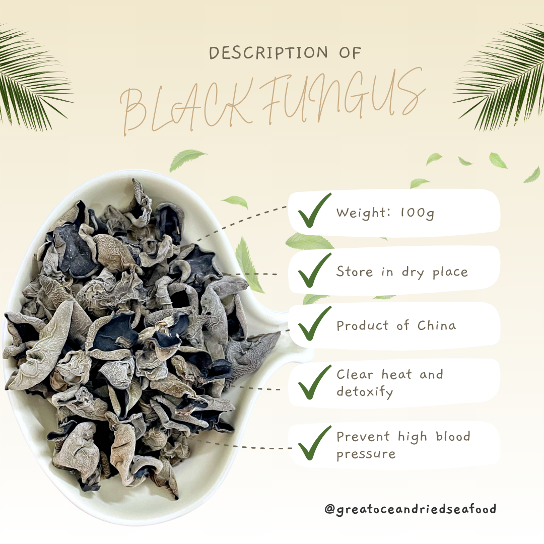 The health benefits of Black Fungus include: Reducing blood clotting to prevent blood vessel blockage. Rich amount of plant collagen helps to protect blood vessels and cartilages in the joints against injuries. High calcium content promotes growth in bones and maintains healthy bones.