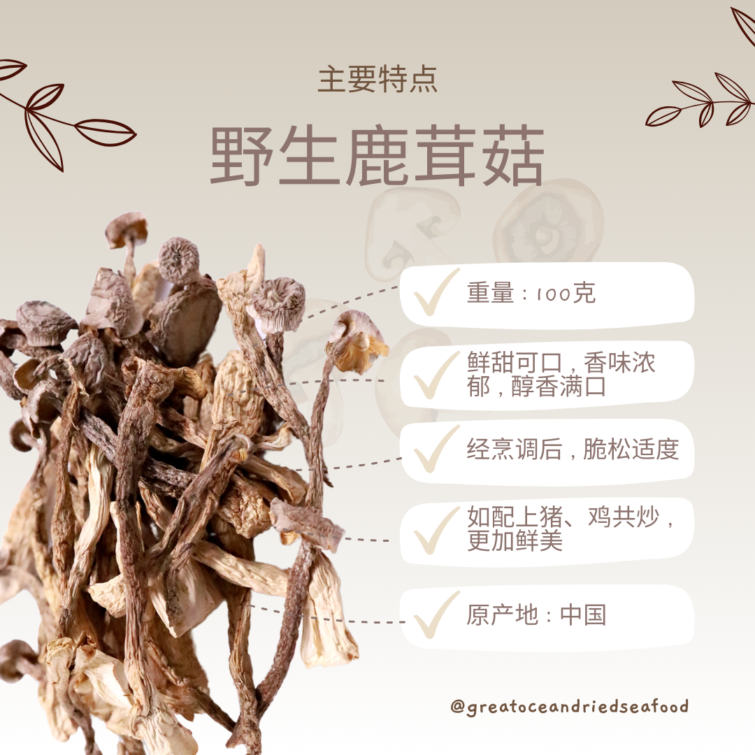 [100g] Great Ocean Dried Velvet Mushroom | 野生 鹿茸菇