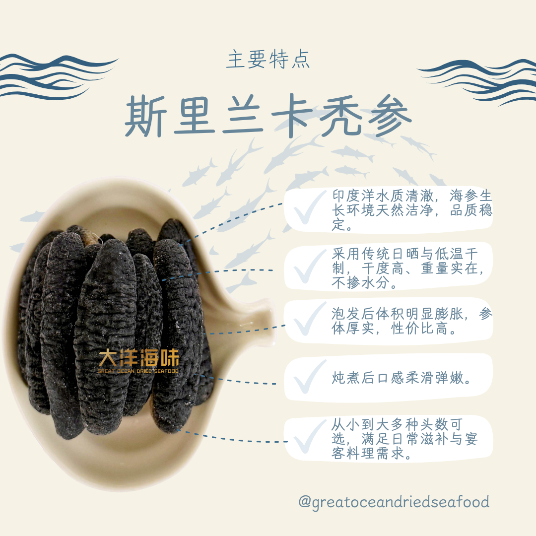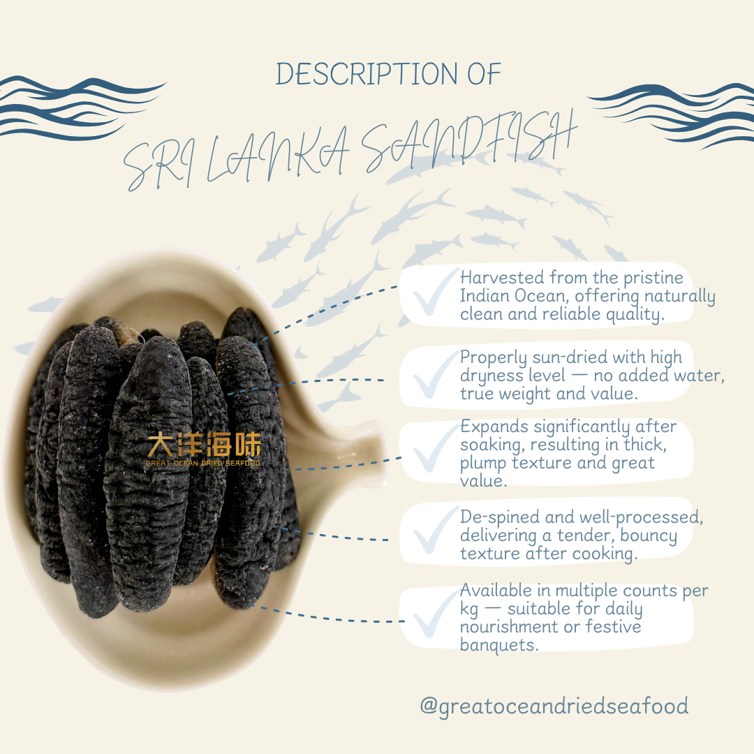 [1kg] Great Ocean Sri Lanka Sandfish Sea Cucumber | 斯里兰卡秃参 (一级)