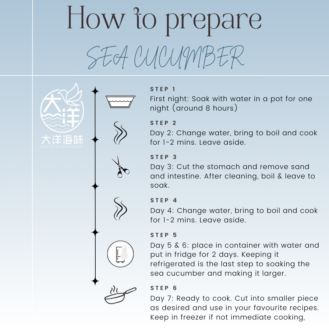 Picture of size is only for illustration, kindly note that sea cucumber are natural marine product, for more accurate for the size of sea cucumber, depend on the head and quantity of sea cucumber per kg.