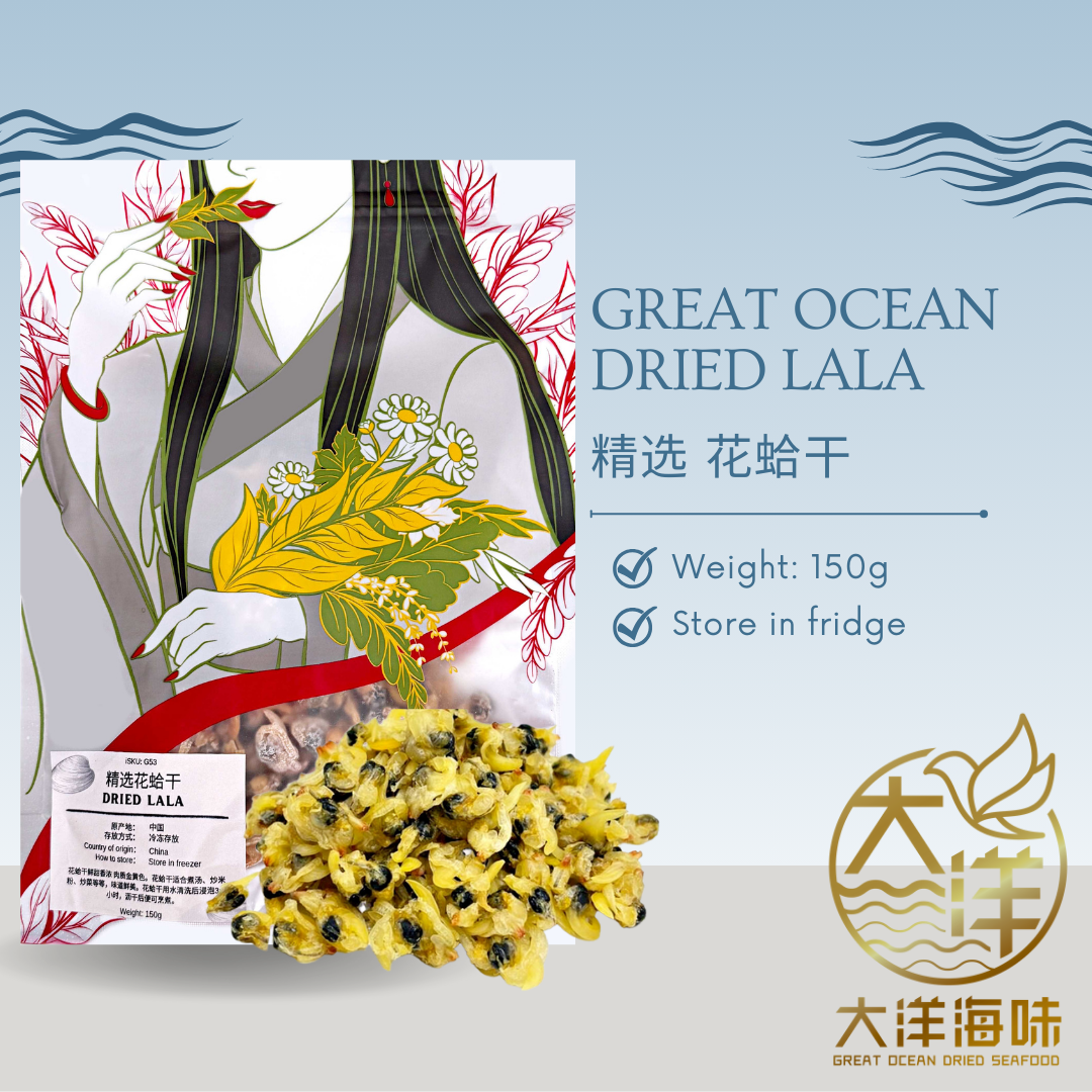 ![6933fd22a09b0_1765014818.jpg [150g] Great Ocean Dried Clams | Dried Lala | 精选 花蛤干 | Isi Kepah Kering - Image 1](https://greatocean.my/wp-content/uploads/2025/12/6933fd22a09b0_1765014818.png)