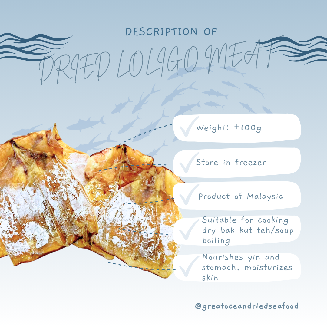 [4inch-100g-Meat] Great Ocean Dried Loligo Meat | Sotong Kering | 鱿鱼肉 | Dried Squid (Meat)