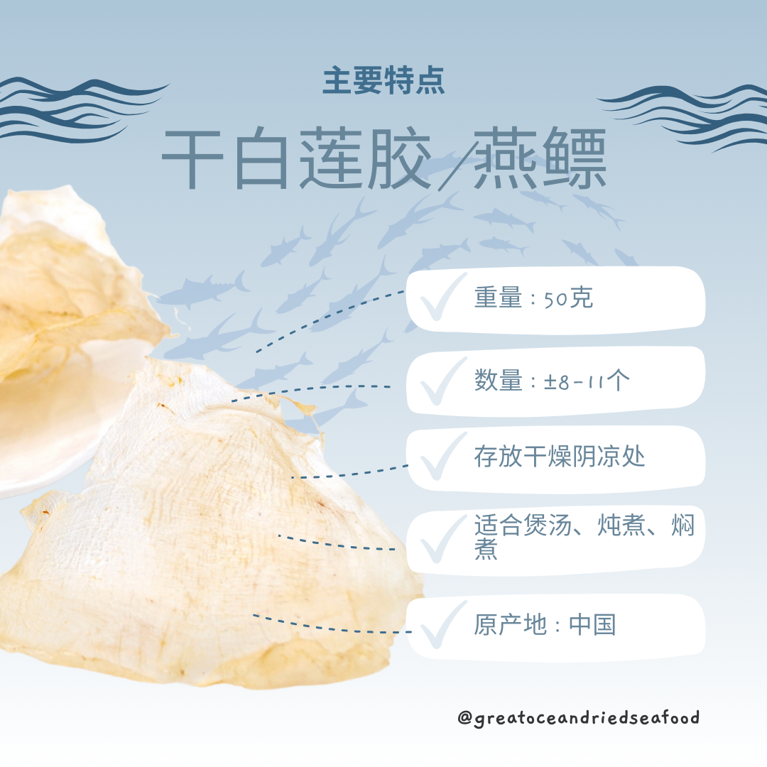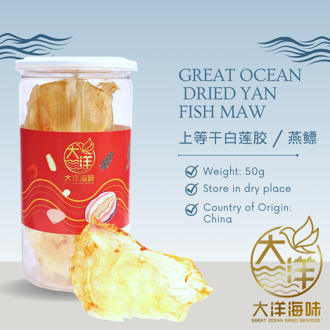 [50g-Bottle] Great Ocean Dried Yan Fish Maw | 上等 干白莲胶 | 干燕鳔